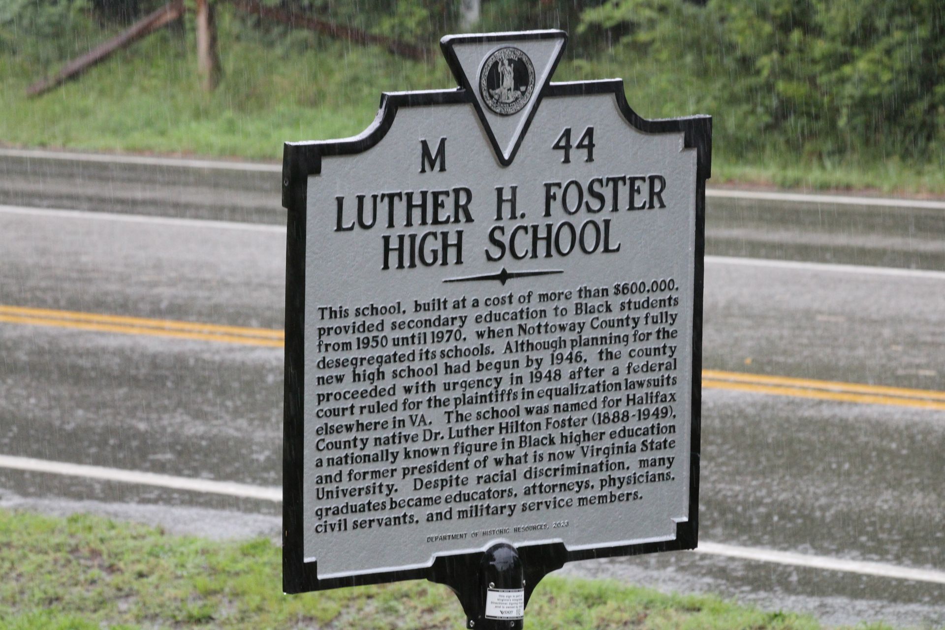This school, built at a cost of more than $600,000, provided secondary education to Black students from 1950 until 1970, when Nottoway County fully desegregated its schools. Although planning for the new high school had begun in 1946, the county proceeded with urgency in 1948 after a federal court ruled for the plaintiffs in equalization lawsuits elsewhere in VA. The school was named for Halifax County native Dr. Luther Hilton Foster (1888-1949), a nationally known figure in Black higher education and former president of what is now Virginia State University. Despite racial discrimination, many graduates became educators, attorneys, physicians, civil servants, and military service4 members.